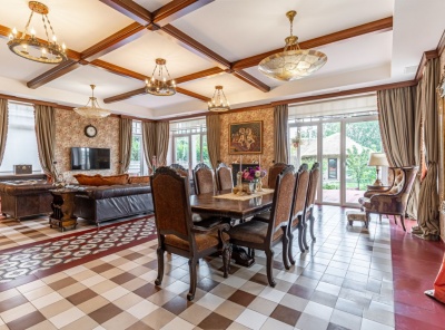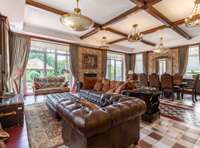 Продажа загородного дома площадью 310 кв.м. Новорижское шоссе, 12 км. Коттеджный поселок Прозорово. Дом с роскошный дизайнерской отделкой в английском стиле в строгоохраняемом КП со всеми центральными коммуникациями. На участке 11 соток смонтирована баня под отделку из экологически чистых материалов. Выполнен ландшафтный дизайн с использованием разных растений и цветов. Бассейн. Домик для хоз утвари.
