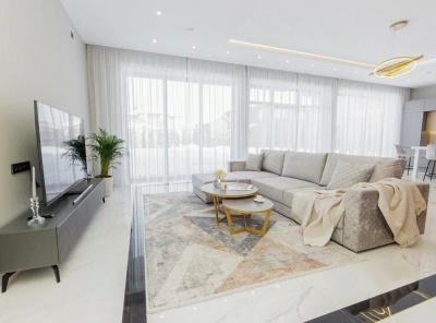Продажа загородного дома площадью 440 кв.м. Новорижское шоссе, 25 км от МКАД. Коттеджный поселок Озерный. Выполнена дизайнерская отделка под ключ. Установлена премиальная Итальянская мебель и техника. Прекрасное планировочное решение для большой семьи. Участок 15 соток, правильной формы, на солнечной стороне, в готовой части посёлка. По периметру высажены крупномеры. Навес под 2 авто.
