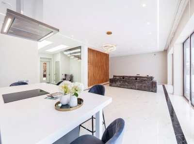Продажа загородного дома площадью 260 кв.м. Новорижское шоссе, 23 км от МКАД. Коттеджный поселок Новорижский. Дом построен в 2 этажа из кирпича в стиле Хайтек, что придает ему современный и эстетичный вид. Интерьер дома выполнен в современном минималистичном стиле, что создает ощущение простора и функциональности. Панорамное остекление обеспечивает прекрасное естественное освещение дома и открывает прекрасные вид. В доме установлена техника от известных премиальных брендов, что гарантирует высокое качество и комфорт использования.