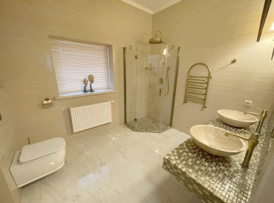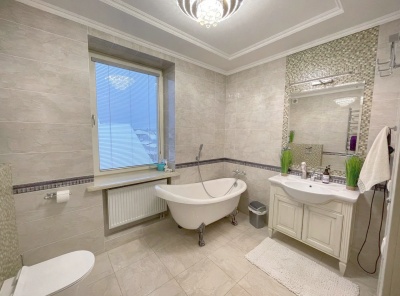 Аренда загородного дома площадью 220 кв.м. Коттедж построен в 2 этажа, под ключ. Полностью оборудован всей необходимой мебелью и техникой. Отделка в классическом стиле, итальянская кухня, обои текстиль, дорогая плитка и сантехника в санузлах. Дом ранее не сдавался. Зеленый участок 9 соток с ландшафтным дизайном, авто поливом и парковым освещением. Кондиционирование, подогрев полов, выделенная линия интернет.