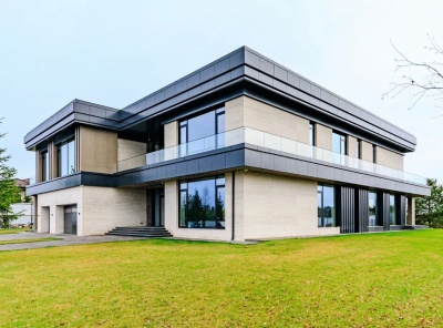 Продажа загородной резиденции общей площадью 2400 кв.м. Коттеджный поселок Гринфилд. Новорижское шоссе, 24 км от МКАД. Особняк построен в 3 этажа, без отделки. Дом облицован шпонированными панелями и натуральным камнем. Фасадные панели. Участок 152 сотки прилесной с собственным выходом в лес. На участке расположен гараж на 3 м/м с блоком персонала над гаражом с двумя спальнями, гостиной, с/у, кухней.