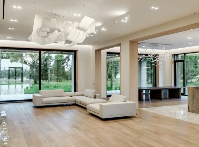 Продажа загородного дома общей площадью 550 кв.м. Коттеджный поселок Горки-8. Рублево-Успенское шоссе, 16 км от МКАД. Дом построен в 1 этаж, под ключ. Высокое качество строительства и отделки. Интерьер выполнен в скандинавском стиле с элементами рустика и contemporary: светлые пространства, натуральные материалы, фактурные акценты и воздушность создают гармонию уюта и масштаба.