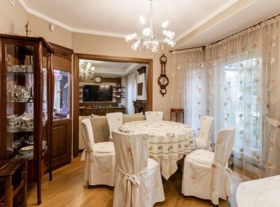 Продажа загородного дома общей площадью 280 кв.м. Новорижское шоссе, 39 км от МКАД. Коттеджный поселок Светлогорье. Дом построен в 2 уровня, в современном стиле. Под ключ, из кирпича. В отделке использованы дорогие материалы европейских производителей, бытовая техника и мебель ведущих мировых брендов. Участок 8,2 сотки. Планировка:1 этаж - кухня, столовая, гостиная, кабинет/спальня, с/у, гараж, котельная, выход на открытое патио,2 этаж - 2 спальни, с/у, хозяйская спальня с ванной комнатой.