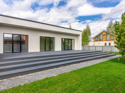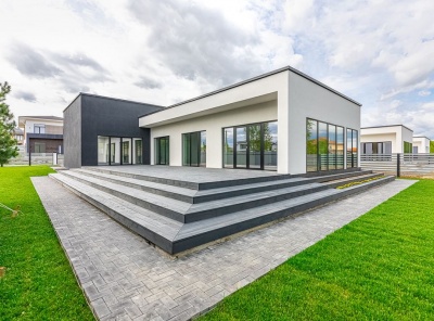 Продажа загородного коттеджа площадью 210 кв.м. Новорижское шоссе, 33 км от МКАД. Коттеджный поселок Люкс-Проект. Коттедж построен в 1 уровень, отделка Whitebox. Современный дизайн, панорамное остекление, просторные комнаты, высокие потолки. Все центральные коммуникации, газовый котел. Участок 11 соток. Охраняемый поселок.Планировка:Холл, кухня-столовая-гостиная, кабинет, с/у, спальня с гардеробной и ванной комнатой, 2 спальни, гараж на 1 м/м.