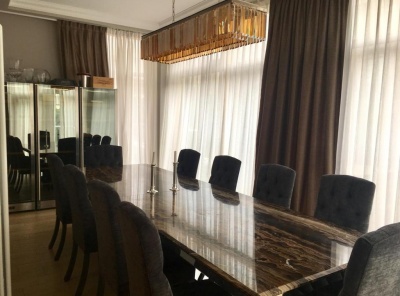 Аренда таунхауса площадью общей 291 кв.м. Новорижское шоссе, 23 км от МКАД. Коттеджный поселок Парк Авеню. Таунхаус построен из кирпича в 3 этажа. Под ключ. Полностью меблирован и готов к проживанию. Участок 2 сотки.Планировка:1 этаж - кухня-гостиная, столовая, терраса, гардеробная, санузел, постирочная, комната для персонала2 этаж - основная спальня, ванная, гардеробные, кабинет с гардеробной и душевой3 этаж - спальня с рабочим кабинетом, гардеробной и ванной, спальня гардеробной и ванной.