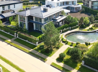 Продажа загородного дома общей площадью 450 кв.м. Новорижское шоссе, 19 км от МКАД. Коттеджный поселок Миллениум Парк. Гостевой дом площадью 123 кв.м и здание под банный комплекс 60 кв. м. Участок угловой с живописными видами на каскад прудов и парковую зону. Площадь участка 17 соток.