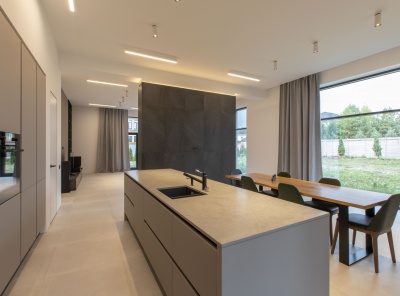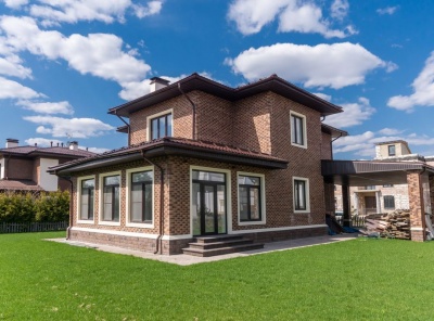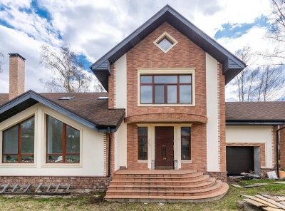 Продажа загородного дома площадью 390 кв.м. Новорижское шоссе, 27 км от МКАД. Коттеджный поселок Крона. Дом построен из кирпича в 2 этажа. Плоская кровля. Отделка фасадов – декоративная штукатурка, керамический кирпич. Панорамное остекление, стеклопакеты с алюминиевым профилем. В интерьере дома использованы дорогие, натуральные материалы. Дом оборудован системой кондиционирования. Участок 21 сотка. На участке высажены туи, сосны, декоративные растения.