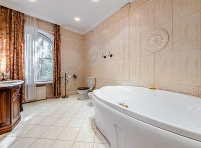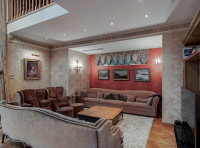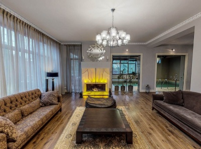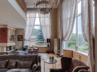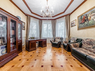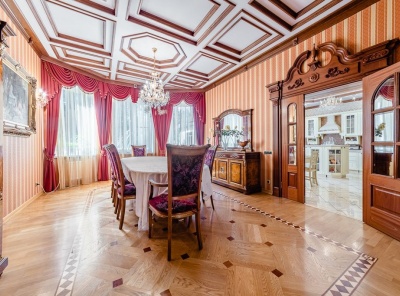 Продажа загородного дома общей площадью 610 кв.м. Поселок Архангельское. Новорижское шоссе, 9 км от МКАД. Особняк построен в 3 этажа из кирпича. С мебелью, под ключ. В отделке использованы дорогостоящие материалы. Стены дома выполнены из керамического кирпича, кровля - металлические листы по деревянным стропилам, окна - из дерева. В доме установлен газовый котел De Dietrich. Уютный, зеленый участок 23 сотки на окраине поселка с видом на прилегающий лес.