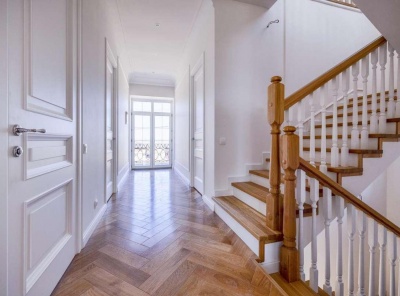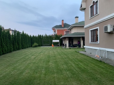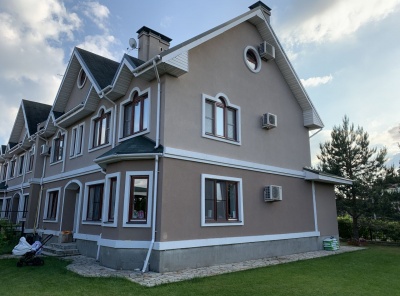 Продажа загородного дома (дуплекс) площадью 300 кв.м. Новорижское шоссе, 25 км от МКАД. Коттеджный поселок Крона. Дуплекс построен из кирпича в английском стиле. Интерьер выполнен из материалов премиум класса. Лестница и подоконники изготовлены из натурального мрамора. Полы - паркет, плитка и сантехника производство Италия. На участке 10 соток с ландшафтным дизайном расположен гостевой дом 220 м2. Гараж на 1 м/м.
