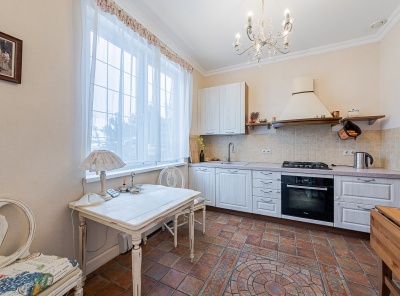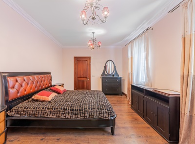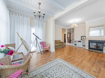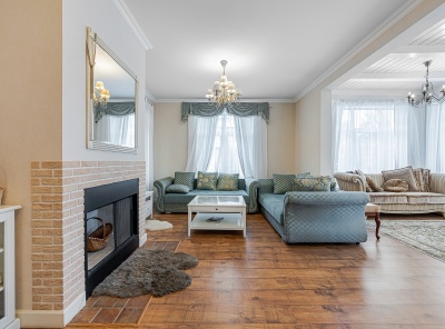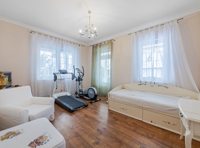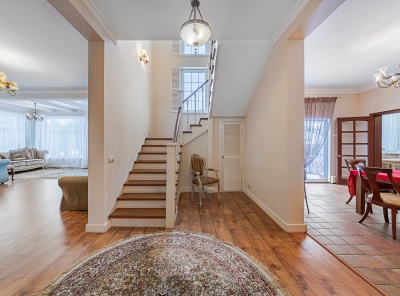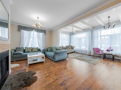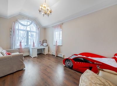 Продажа загородного дома площадью 400 кв.м. Коттеджный поселок Княжье Озеро. Новорижское шоссе 24 км от МКАД. Коттедж построен по каркасной технологии в 2 этажа и расположен в тихой части поселка у парка. Интерьер выполнен в классическом стиле. Участок 20 соток уложен газон, высажены плодовые деревья.