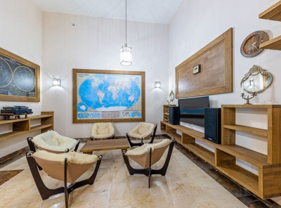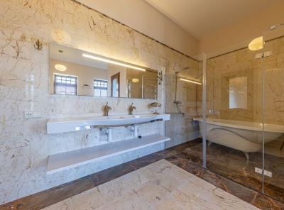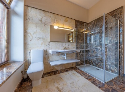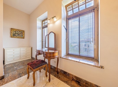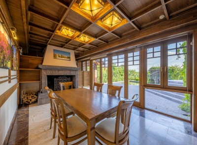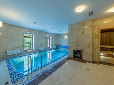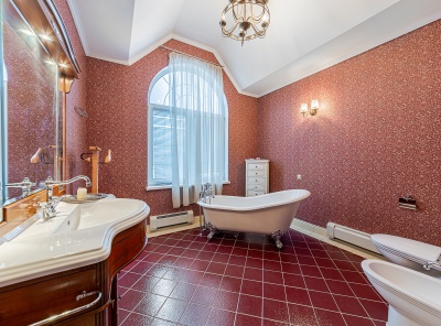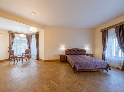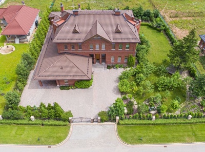 Продажа загородной резиденции общей площадью 1230 кв.м. Коттеджный поселок Береста. Новорижское шоссе, 2 км от МКАД. Основной дом общей площадью 950 кв.м. построен в 3 этажа. Первый этаж выполнен в граните и мраморе, художественная роспись стен, много витражей. В доме есть лифт. Резной паркет уложен на 2 и 3 этажах. Дом обставлен премиальной итальянской мебелью (Mascheroni, Rossi di Albizzate и др.) Во всем доме немецкие деревянные окна с мраморными подоконниками.