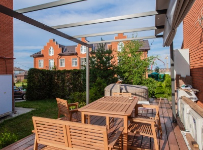 Продажа загородного таунхауса площадью 210 кв.м. Новорижское шоссе, 1 км от МКАД. Поселок Мякинино. Таунхаус построен в 3 уровня под ключ с мебелью. Просторная светлая кухня, спальня с камином. Участок 1 сотка. Гараж на 1 м/м, парковка на 1 м/м перед домом.