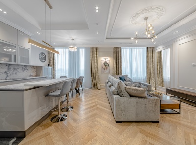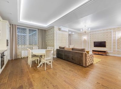Продажа 3-комнатной квартиры площадью 138 кв.м. в современном стиле. Метро Университет, 3 минуты пешком. Ломоносовский проспект, дом 25к1. ЖК Доминион. Кухня оборудована современной бытовой техникой. Теплая элегантная атмосфера. Ремонт выполнен из импортных высококачественных и экологических материалов из Италии.Планировка: кухня-столовая, гостиная, 2 спальни, гардеробная, 2 санузла.