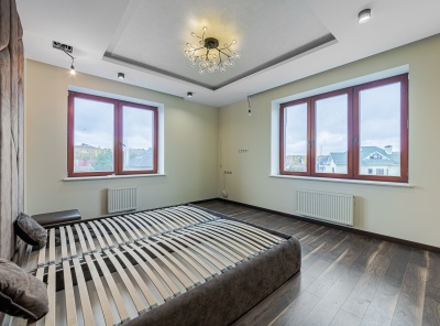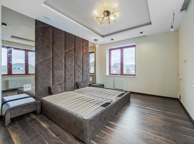 Продажа загородного дома площадью 600 кв.м. Новорижское шоссе, 19 км от МКАД. Коттеджный поселок Миллениум Парк. Дом построен в 2 этажа из кирпича. Светлый уютный коттедж. Участок 18 соток правильной формы.Планировка:1 этаж - кухня-столовая-гостиная, спальня с с/у, гардеробная, 2 с/у, котельная, бассейн, сауна, гараж на 2 м/м.2 этаж - мастер-спальня с гардеробной и с/у, спальня с с/у и гардеробной, спальня, с/у, постирочная.