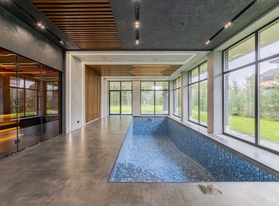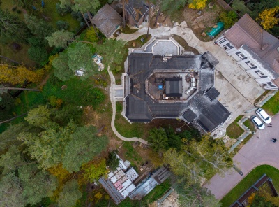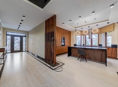 Продажа современного дома площадью 1100 кв.м. Рублево-Успенское шоссе, 24 км от МКАД. Коттеджный поселок Сосновый Бор. Дом построен в 3 уровня под финишную отделку в классическом стиле с панорамными окнами, фасады из натурального камня. В доме выполнены все инженерные работы, отопление, тёплые полы, вентиляция, электрика, полностью смонтирована и функционирует котельная, смонтированы два камина (один уличный). На участке площадью 43 сотки расположены отдельно стоящий гараж на 3-4 м/м с квартирой для персонала 180 кв.м.