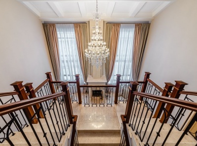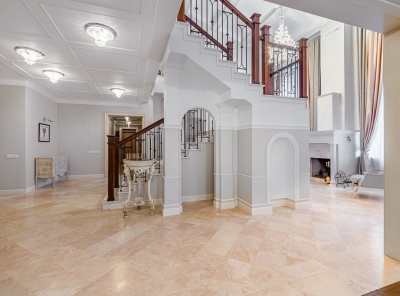 Продажа загородного дома общей площадью 400 кв.м. Новорижское шоссе, 23 км от МКАД. Коттеджный поселок Монтевиль. Коттедж построен в 2 этажа. В стиле современной классики. Дорогая отделка и грамотная планировка. Участок 20 соток недалеко от парковой зоны с рекой. На территории участка навес для авто, отдельно стоящий дом для персонала 100кв.м.Планировка:1 этаж: гостиная, кухня, столовая с выходом на террасу, с/у, гардеробная, с/у, котельная, гараж 2 м/м,2 этаж: спальня с с/у и гардеробной, 2 спальни с с/у, спальня.