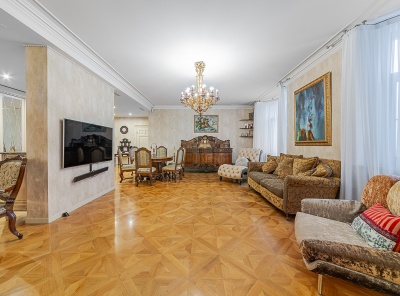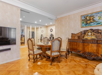 Аренда 4-комнатной квартиры площадью 225 кв.м. Метро Сокол, 12 минут пешком. Чапаевский переулок, дом 3. ЖК Триумф Палас. Светлая, уютная, просторная квартира с отделкой в классическом стиле, которая выполнена из высококачественных экологичных материалов. Полы - паркетная доска, подоконники - мрамор. Кухня - Италия (Francesco Molon) оборудована техникой Miele, в том числе посудомоечной машиной, духовым, винным шкафом. Встроенные гардеробы - Германия. Антикварная мебель. Теплые полы во всей квартире.