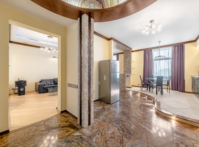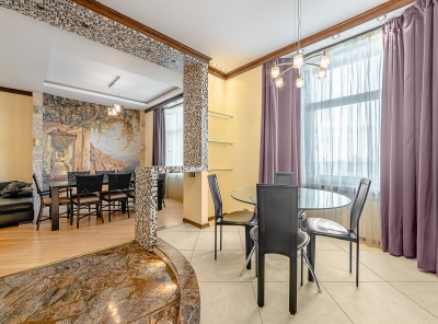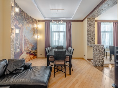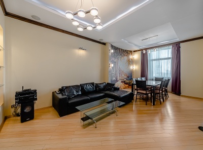 Аренда 3 х-комнатной квартиры площадью 135 кв.м. Метро Сокол, 10 минут пешком. Чапаевский переулок дом 3. ЖК Триумф Палас. Светлая, тихая квартира с эксклюзивной, дизайнерской отделкой. Использовались только дорогостоящие, натуральные материалы: паркетная доска из массива ценных пород, мрамор, фрески на стенах, плитка во всех комнатах выполнена на заказ. Квартира укомплектована мебелью и бытовой техникой от ведущих производителей. Имеется приточно-вытяжная вентиляция.