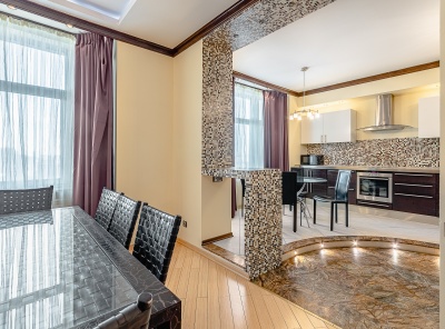 Аренда 4-комнатной квартиры площадью 200 кв.м. Метро Сокол, 12 минут пешком. Чапаевский переулок, дом 3. ЖК Триумф Палас. Светлая, уютная, тихая квартира с отделкой в современном стиле, которая выполнена из высококачественных экологичных материалов. Полы - массив буда. Так же в отделочных материалах использованы оникс и мрамор. Мебель - Италия. Деревянные окна (Германия). На кухне гарнитур со встроенными шкафами, есть вся необходимая бытовая техника (Miele, Kuppersbusch). Во всех комнатах блоки регулирования системы кондиционирования. Вид в тихий двор.