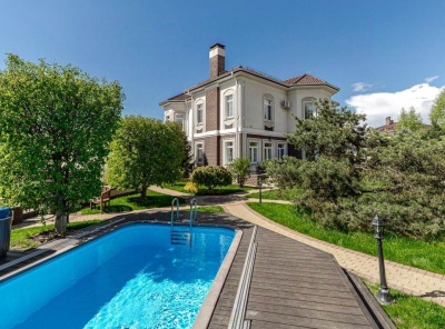 Продажа загородного дома общей площадью 930 кв.м. Новорижское шоссе, 19 км от МКАД. Коттеджный поселок Миллениум Парк. Коттедж построен по классическому проекту в 3 уровня. Полностью меблирован и оснащен всей техникой. На участке 27 соток выполнен ландшафтный дизайн- плодовые деревья, декоративные кустарники, лесная зона и альпийская горка с прудом. Расположен отдельно стоящий гостевой дом 220кв.м и беседка 110кв.м с зоной барбекю, с открытыми витражами и полноценной кухней, SPA-зона с сауной, джакузи, купелью, душевой.Планировка основного дома 600 кв.