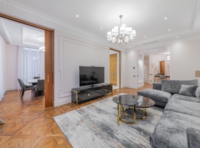 Аренда шикарной 3-комнатной квартиры площадью 140 кв.м. Метро Кропоткинская, 7 минут пешком. 2-й Обыденский переулок, дом 1А. Квартира полностью меблирована эксклюзивной дизайнерской мебелью. Ремонт выполнен в современном классическом стиле. Имеется вся необходимая бытовая техника, система кондиционирования воздуха. Из окон гостиной открывается потрясающий вид на Храм Христа Спасителя. Окна спален выходят в тихий двор жилого комплекса. Из спальни имеется выход на большой застекленный балкон. Подземный паркинг, 1 м/м входит в стоимость.