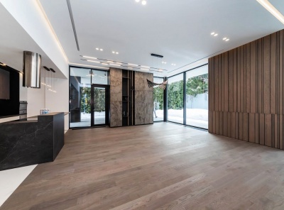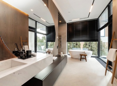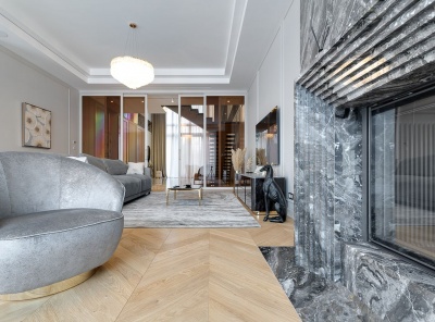 Продажа загородного дома площадью 750 кв.м. Новорижское шоссе, 9 км от МКАД. Коттеджный поселок Третья Охота. Новый современный дом под ключ с мебелью. В отделке использовались высококачественные материалы - паркетная доска из натурального дуба, мрамор, большие панорамные окна из лиственницы, фасад облицован натуральным камнем и деревом. В доме установлена система приточно-вытяжной вентиляции с канальным кондиционированием и увлажнением воздуха, аудио мультирум и WiFi, видеонаблюдение по периметру участка.