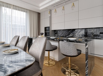 Продажа загородного дома общей площадью 465 кв.м. Рублево-Успенское шоссе, 24 км от МКАД. Коттеджный поселок Николино. Дом построен в 2 этажа под ключ. В отделке использованы премиальные материалы, мрамор, натуральное дерево. Участок 11 соток с готовым ландшафтным дизайном.Планировка1 этаж - кухня - столовая - гостиная с панорамным остеклением и выходом в зону патио с каминной печью, спальня - кабинет с с/у, гардеробная, постирочная, кладовая, гараж на 2 м/м. 2 этаж - мастер спальня, 2 спальни с с/у и гардеробными.