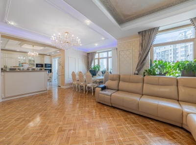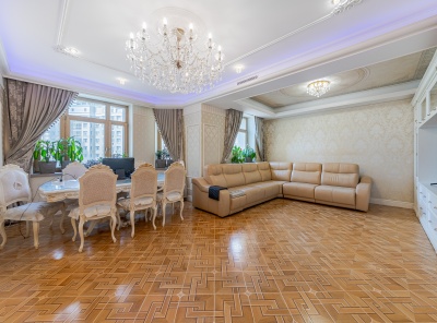 Продажа 4-комнатной квартиры 190 кв.м с дизайнерским ремонтом. Метро Университет, 3 минуты пешком. Ломоносовский проспект, дом 25к5. ЖК Доминион. Ремонт сделан в классическом стиле. Квартира полностью меблирована. Кухня оборудована современной бытовой техникой Miele. Санузел оборудован качественной европейской сантехникой. Кондиционирование, подогрев полов. Теплая элегантная атмосфера. Ремонт выполнен из высококачественных и экологических материалов. Светлые, ненавязчивые тона, разноуровневое освещение. Окна выходят во двор.