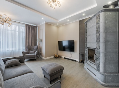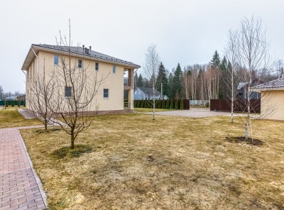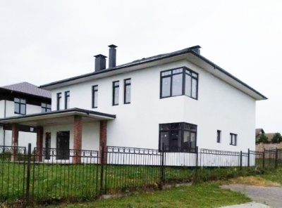 Продажа загородного коттеджа площадью 300 кв.м. Новорижское шоссе, 24 км от МКАД. Коттеджный поселок Русская Деревня. Дом построен в 2 этажа из газобетонных блоков BONOLIT + утепление минеральная вата ROCKWOOL 50 мм. Кровля- гибкая черепица KATEPAL (Финляндия), 3-й технический этаж утеплён и обшит плитами OSB. Установлены 3-камерные стеклопакеты. В гостиной- окна в пол и выход на террасу, место для камина. Все коммуникации- центральные (электричество, вода, канализация), заведены в дом. Газ- по границе участка.