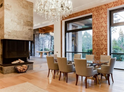 Продажа загородного дома общей площадью 1200 кв.м. Поселок Новинки. Новорижское шоссе 14 км от МКАД. Построен в 3 этажа под ключ. Современный дом с большими панорамными окнами, балконами необычной архитектурной формы, оригинальной по форме крышей, с канадским кедром и дорогим камнем во внешней отделке. Внутренние интерьеры, выполнены в современном стиле. Изюминкой дома является камин-очаг, множество зеркал, лестница со стеклянными перилами. На участке 47 cоток есть отдельно стоящий гараж 329 кв .м. с квартирой для персонала.
