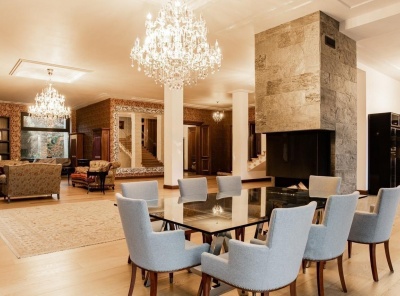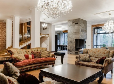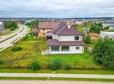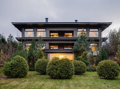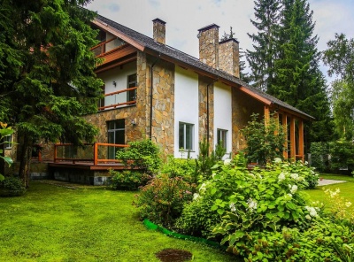 Продажа загородного дома общей площадью 600 кв.м. Новорижское шоссе, 26 км от МКАД. Коттеджный поселок Шервуд. Дом построен в 3 уровня. Под ключ. Участок 30 соток на котором расположен гостевой дом площадью 200 кв.м.Планировка1 этаж - холл, лифт, кухня, каминный зал со вторым светом и выходом на веранду, зона СПА,2 этаж - мастер-спальня с балконом, 2 спальни, с/у, Мансарда - зона свободного назначения, санузел, балкон.