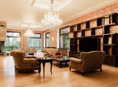 Продажа загородного коттеджа площадью 600 кв.м. Новорижское шоссе, 16 км от МКАД. Коттеджный поселок Веледниково. Построен в 2 этажа. Выполнена качественная отделка в современном стиле под ключ с мебелью. Участок 25 соток.Планировка1 этаж - холл, кухня - столовая, гостиная, кабинет, с/у, блок для персонала, постирочная, гараж на 2м/м, 1,5 этаж - мастер-спальня,2 этаж - 3 спальни с с/у и гардеробными, зона отдыха.