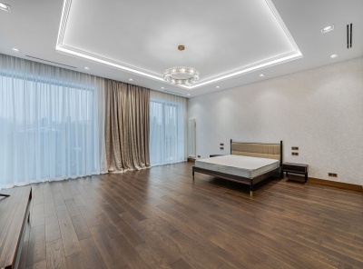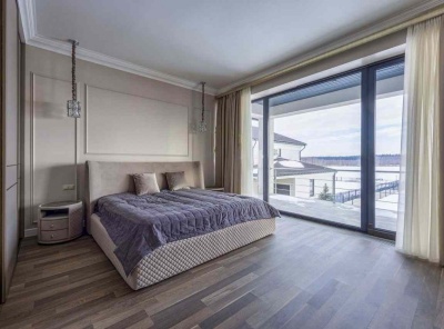 Продажа загородного дома площадью 360 кв.м. коттеджный поселок Чистые пруды-2. Новорижское шоссе, 14 км от МКАД. Дом построен в современном стиле, полностью укомплектован премиальной мебелью, оборудован бытовой техникой. Коттедж с приватным пирсом и видом на озеро. Участок 12 соток, выполнен ландшафтный дизайн, высажен газон, установлена дренажная система, автополив.Планировка:1 этаж - прихожая, холл, спальня, кухня-гостиная, с/у, котельная.2 этаж - спальня с с/у и гардеробной, 2 спальни, с/у.