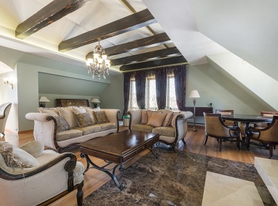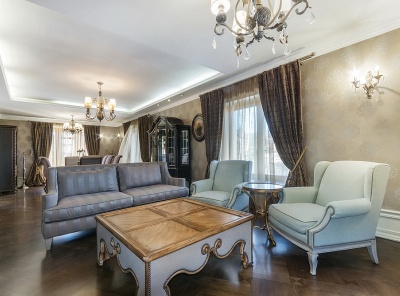 Продажа загородного дома площадью 705 кв.м. Новорижское шоссе, 9 км от МКАД. Коттеджный поселок Третья Охота. Дом построен в 3 уровня, под ключ, c мебелью. Фасад дома выполнен из натурального камня, во внутренней отделке использованы дорогие натуральные материалы. На участке выполнен ландшафтный дизайн, система автоматического полива. Отдельная зона для отдыха, крытая беседка с камином, печкой, мангалом и кухней. Площадь участка 18 соток.