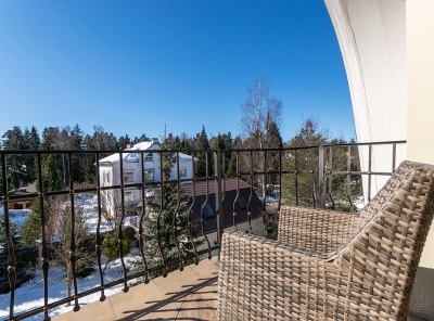 Продажа загородного дома площадью 410 кв.м. Новорижское шоссе 23 км от МКАД. Коттеджный посёлок Новорижский. Комфортный дом под ключ полностью меблирован, установлены угловая кухня HECKER (Германия) со встраиваемой техникой: холодильник и морозилка Liebherr, духовой шкаф, микроволновая печь, варочный индукционная панель, посудомоечная машины, винный шкаф фирмы Siemens. Дом построен на свайно-ленточном фундаменте. Стены выполнены из газоблоков. Для летних завтраков на первом этаже создана просторная крытая терраса.
