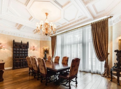 Аренда 3-комнатной квартиры площадью 200 кв.м. Метро Кропоткинская, 5 минут пешком. Улица Остоженка, дом 27. ЖК Ретро Хаус . Квартира полностью меблирована, эксклюзивная, дизайнерская, антикварная мебель, выполнена из редких пород дерева. Мраморные колонны, антикварная мебель, картины, античные фрески, украшающие потолок. Ремонт выполнен в классическом стиле. Вся необходимая бытовая техника, включая кондиционеры. Окна выходят во двоp и на улицу.Планировка: кухня- гостиная, спальня, кабинет, 2 с/у, большая гардеробная, зимний сад.