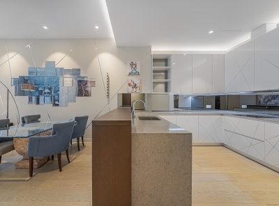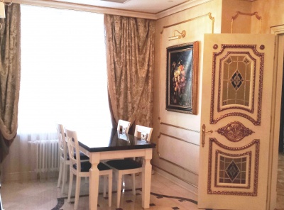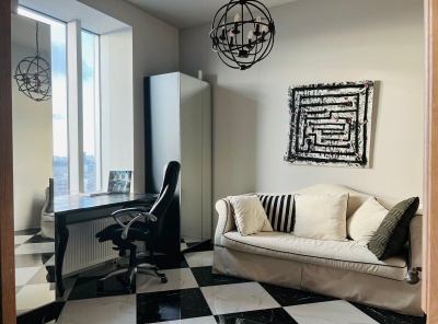 Продажа 3-комнатной квартиры площадью 100 кв.м. Метро Киевская 7 минут транспортом. Адрес: Мосфильмовская д. 8 ЖК Дом на Мосфильмовской. Выполнен эксклюзивный дизайн в стиле Ральф Лорен с элементами натурального камня. Полностью меблирована и укомплектована всей необходимой техникой бренда Miele, мебель итальянского производителя Scavolini, имеется сауна. В квартире установлены кондиционеры. Планировка: гостиная, кухня, спальня с отдельной гардеробной, санузел.