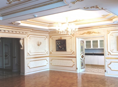 Продажа 4-комнатной квартиры, площадью 217 кв.м. Метро Ломоносовский проспект 8 минут на транспорте. Адрес: ул. Мосфильмовская д. 70 к. 1. ЖК Воробьевы Горы. В квартире выполнен дизайнерский ремонт в стиле современной классики. Предлагается без мебели, укомплектована всей необходимой техникой и сантехникой. Высота потолков 3 м. Планировка: холл, гостиная-столовая, кухня, три спальни, три с/у, гардеробная, постирочная.