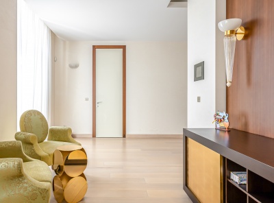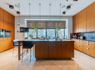 Аренда загородного дома площадью 300 кв.м. Коттеджный поселок Петровский парк. Новорижское шоссе, 35 км от МКАД. Одноэтажный проект реализован из материалов премиум класса по индивидуальному проекту. Полы выполнены из массива ореха. Вся мебель от компании BAKER изготовленная под заказ. Бытовая техника от компании -V-ZUG (Швейцария). Спа-зона представляет собой отдельное крыло с хамамом, душевой и с/у с выходом на летнюю веранду где расположены лежаки и мебель из ротанга.