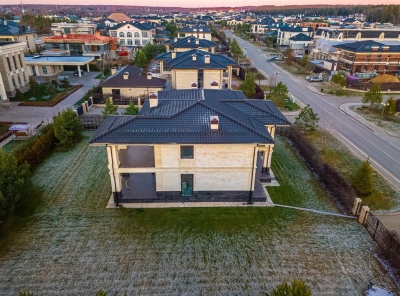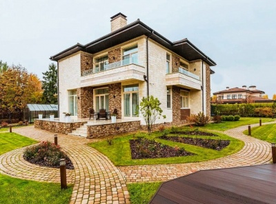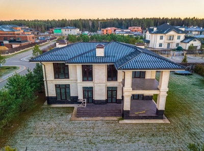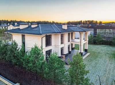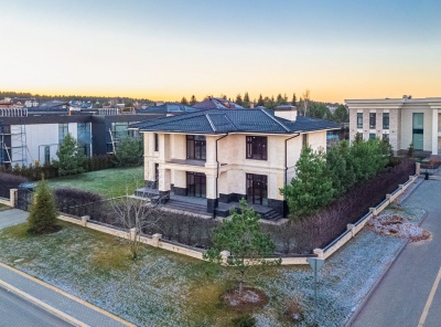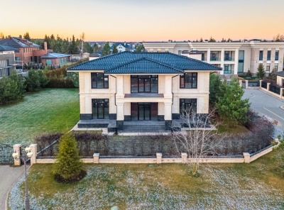 Продажа загородного дома в стиле современной классики общей площадью 505 кв.м. Новорижское шоссе, 23 км от МКАД. Коттеджный поселок Монтевиль. Дом построен в 2 этажа под ключ. Участок 10 соток. Отдельно стоящий гараж на 2 м/м с квартирой для персонала.Планировка: 1 этаж - холл, гардеробная, с/у, гостиная, кухня, столовая, кабинет, с/у, котельная, терраса,2 этаж - холл, 3 спальни с с/у и гардеробными.