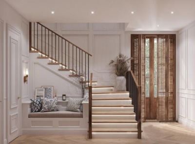 Продажа загородного дома в стиле современной классики общей площадью 505 кв.м. Новорижское шоссе, 23 км от МКАД. Коттеджный поселок Монтевиль. Дом построен в 2 этажа под ключ. Участок 10 соток. Отдельно стоящий гараж на 2 м/м с квартирой для персонала.Планировка: 1 этаж - холл, гардеробная, с/у, гостиная, кухня, столовая, кабинет, с/у, котельная, терраса,2 этаж - холл, 3 спальни с с/у и гардеробными.