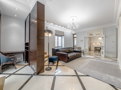 Продажа 3- комнатной квартиры площадью 136 кв.м. Метро Улица 1905 года, 13 минут пешком. Улица 2-я Черногрязская, дом 6к2. ЖК Ред Сайд. Просторная и стильная квартира с новым, современным ремонтом, укомплектованы всей необходимой техникой и мебелью премиальных брендов. В отделке использованы дорогостоящие натуральные материалы, ремонт выполнен в стиле арт-деко. Квартиру делали для себя, практичная планировка, рациональное использование пространства, много систем хранения. Виды из окон во двор и на Москву-Сити.