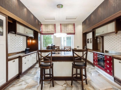 Продажа загородной резиденции общей площадью 1122 кв.м. Новорижское шоссе, 19 км. Коттеджный поселок Резиденции Бенилюкс. Дом построен в 4 уровня, в английском стиле, под отделку. Высокое качество строительства. Участок 42 сотки утопает в окружении лесного массива. На участке располагается гараж площадью 167 кв.м. с блоком для персонала.