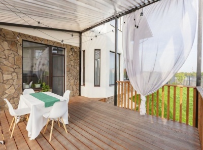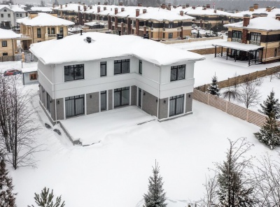 Продажа нового загородного дома площадью 365 кв.м. Новорижское шоссе, 23 км от МКАД. Коттеджный поселок Новорижский. Дом построен в 2 этажа из газоблока по проекту. Фасад дома утеплен 100 мм. Фундамент - сваи + монолитная плита. Разведены все коммуникации, дом отапливается. Первый этаж теплые полы. Отделка WhiteBox. Панорамные окна REHAU. Над гаражом эксплуатируемая кровля. Участок 10 соток.