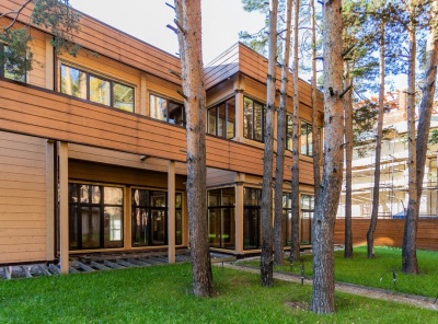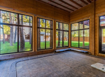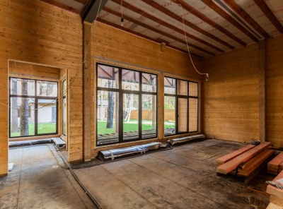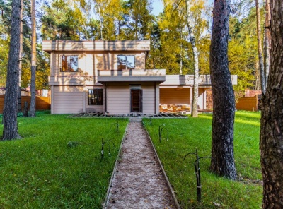 Продажа дома площадью 626 кв.м. Новорижское шоссе, 12 км от МКАД. Коттеджный поселок Прозорово. Коттедж построен в 2 этажа из клееного бруса. Под отделку. Расположен в тихой части поселка рядом с лесом. Панорамное остекление с видами на лесной участок, высокие потолки. На участке площадью 12,7 соток располагается отдельно стоящая баня с гостевым блоком площадью 140 кв.м.