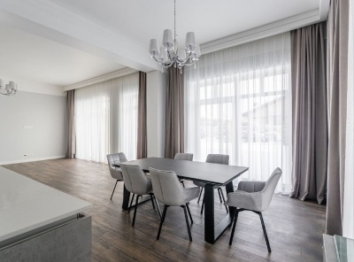 Продажа загородного дома площадью 405 кв.м. Новорижское шоссе, 12 км. от МКАД. Коттеджный поселок Прозорово. Дом построен в 2 этажа. Под ключ. Участок 12 соток с готовым ландшафтным дизайном. Планировка1 этаж - кухня-гостиная с камином и выходом на патио, гардеробная, с/у, спальня с гардеробной, с/у и выходом на террасу, хаммам, гараж на 2 м/м,2 этаж - 3 спальни с с/у и гардеробными, кабинет.