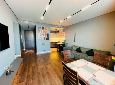 Продажа 2-комнатной квартиры площадью 60 кв.м. Метро Аэропорт, 15 минут пешком. Ленинградский просп., 37/5. ЖК Прайм Парк. Светлая, просторная, уютная квартира с отделкой в соверменном стиле из экологичных материалов. Стеклопакеты премиум сегмента от немецкой фирмы Schuco. Высота потолков - 3.2 м. Вид из окон во двор.Планировка: кухня-гостиная, спальня, с/у.