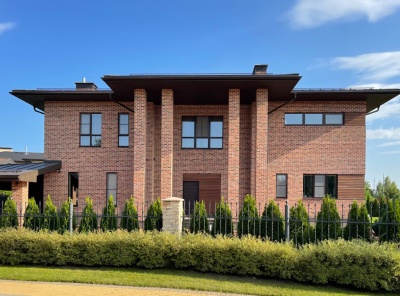Продажа загородного дома общей площадью 485 кв.м. Коттеджный поселок Монтевиль. Новорижское шоссе, 24 км от МКАД. Коттедж построен 2 этажа, фасад дома выполнен из бельгийского кирпича ручной формовки Terca со вставками из лиственницы. Установлена система видеонаблюдения, охранно-пожарная сигнализация с выводом на пульт охраны. Участок 15 соток с ландшафтным дизайном и автоматической системой полива.Планировка1 этаж - холл, гардеробная, гостиная, столовая, кухня, с/у, постирочная, спальня с с/у, терраса.