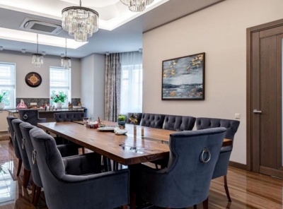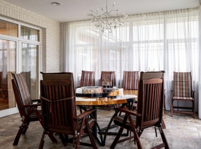 Продажа загородного особняка площадью 550 кв.м. Коттеджный поселок Резиденция Монолит. Новорижское шоссе, 23 км от МКАД. Особняк построен из кирпича в 3 уровня. Свободная планировка. В доме много пространства и света за счет высоких потолков и больших деревянных окон. В доме разведено отопление и установлен газовый котел. Все коммуникации центральные. Особняк располагается на участке 15 соток в приватной части поселка. Планировка:1 этаж - холл, гардеробная, гостевой с/у, кухня, столовая, гостиная с камином.