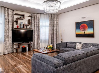 Продажа загородного дома площадью 502 кв.м. Коттеджный поселок Гринфилд. Новорижское шоссе, 24 км от МКАД. Коттедж построен из кирпича в 2 этажа. Фасады отделаны натуральным песчаником. В контур особняка входят гараж и топочная. Выполнена дизайнерская отделка в светлых тонах под ключ с мебелью. Уютный и компактный с просторными комнатами. Премиальные материалы: мрамор, паркет. Премиальная сантехника. Полы покрыты плиткой из натурального камня и дерева. Дом выстроен на территории, огороженной высокими туями.